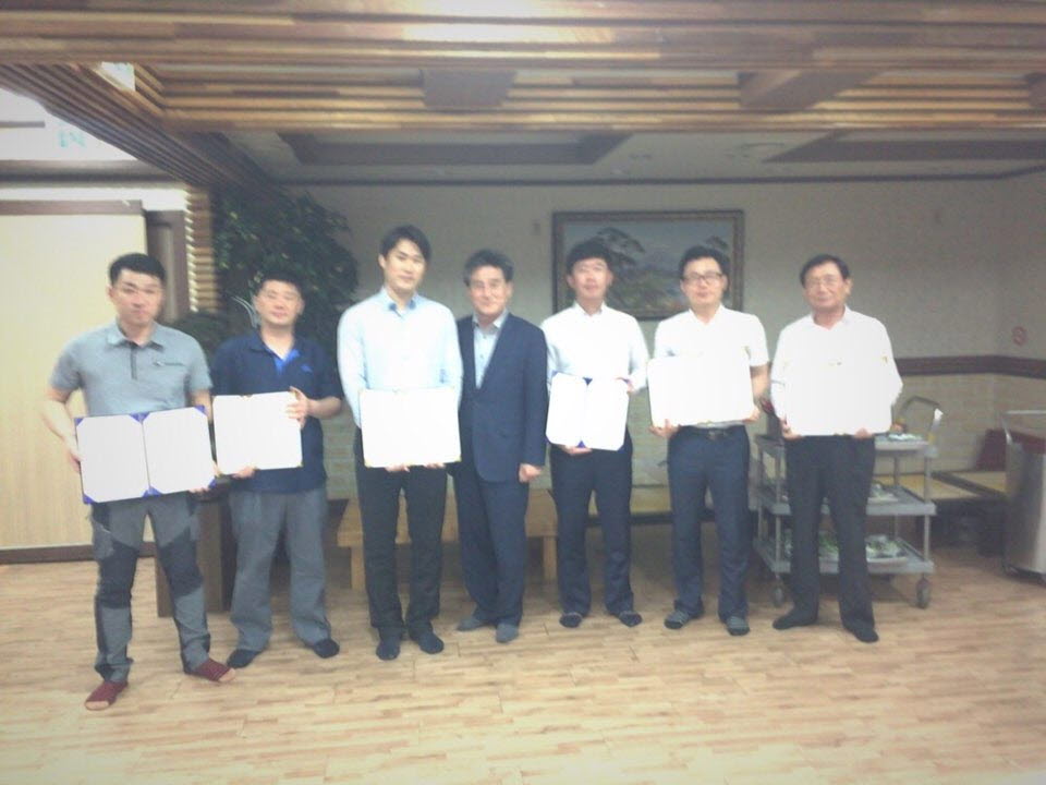 거승철강(주)의 2015년도 승진자 사령장 수여식을 개최하여 승진자 6명에게 사령장을 수여했다.